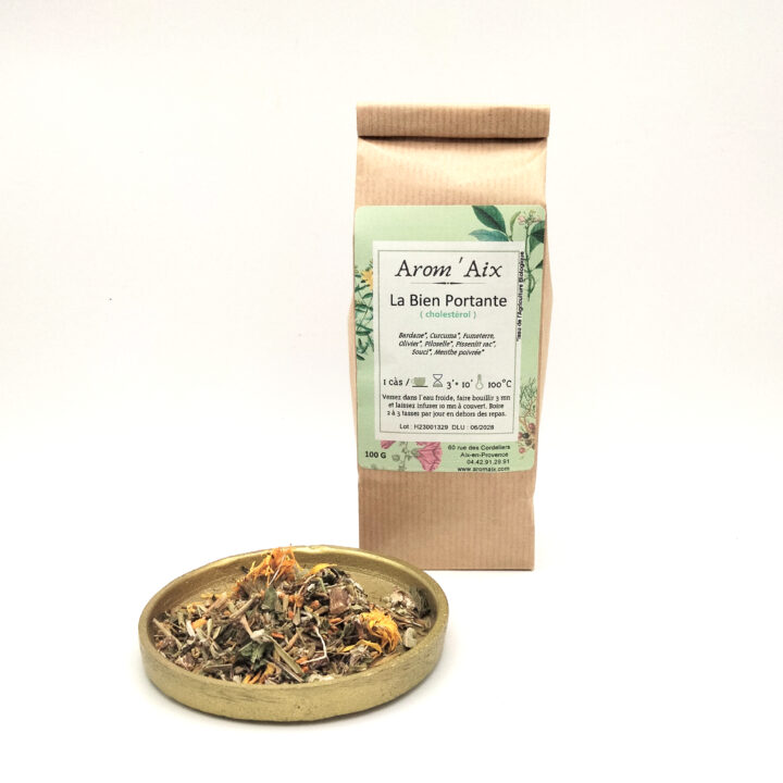 Composition : Bardane*, Curcuma*, Fumeterre, Olivier*, Piloselle, Pissenlit racine*, Souci*, Menthe poivrée*